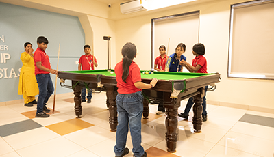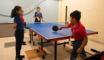 Spin & Strike is a dynamic area where students build focus, coordination, and teamwork through exciting indoor games and activities.